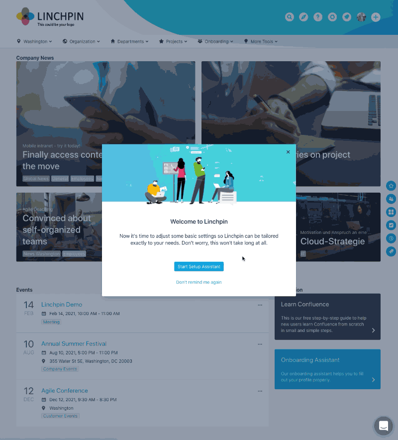 This overview is available from the administration area under “first steps” when you install the Linchpin Intranet Suite from the Atlassian Marketplace.
